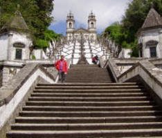 190 km Braga hat 182.000 Einwohne und ist Sitz des Erzbischof-Primas von Portugal. Die Kathedrale von Braga (port.: Sé de Braga) ist als Sitz des Erzbischofs von Braga die älteste Kathedrale in Portugal und zählt aufgrund ihrer Geschichte und ihrer künstlerischen Bedeutung zu den wichtigsten Bauwerken des Landes. Sie bietet eine reichhaltige Mischung architektonischer und künstlerischer Stile. Etwas außerhalb der Stadt liegt in einem kleinen Park das im 18.Jahrhundert erbaute Santuário do Bom Jesus do Monte, das seit langem ein berühmtes Wallfahrtsziel ist. Eindrucksvoll ist sein spektakulärer barocker Treppenaufgang.