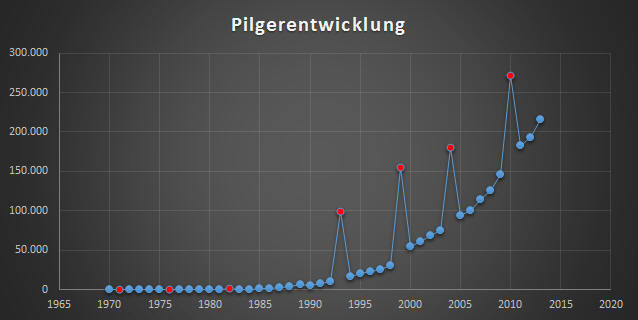 Wie die Grafik zeigt, wächst die Zahl der Jakobspilger immer noch kräftig